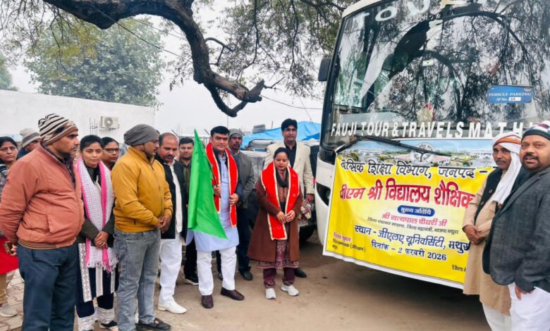 मथुरा/देवेन्द्र शर्मा। परिषदीय पीएमश्री विद्यालयों में अध्यनरत उच्च प्राथमिक विद्यालयों के कक्षा 6 से 8 के छात्र-छात्राओं का शैक्षिक भ्रमण दल बस को कार्यक्रम के मुख्य अतिथि सतपाल चौधरी जिला पंचायत सदस्य एवं जिला महामंत्री भारतीय जनता पार्टी मथुरा द्वारा हरी झंडी दिखाकर रवाना किया गया।