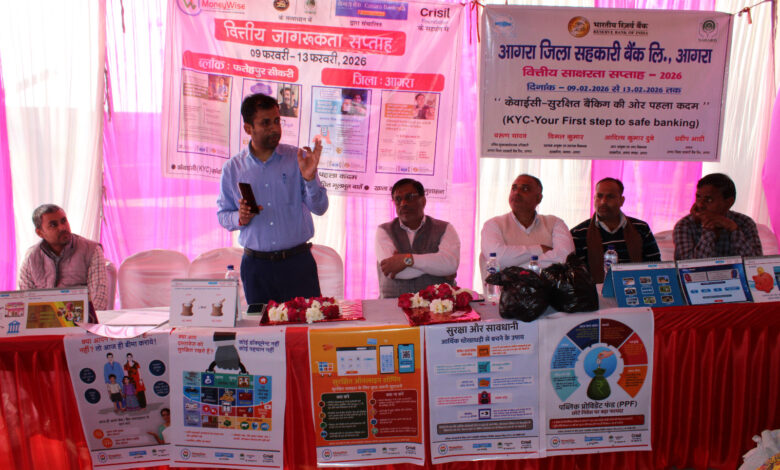 किया गया। भारतीय रिजर्व बैंक (RBI) द्वारा निर्धारित इस वर्ष की थीम “केवाईसी – सुरक्षित बैंकिंग की ओर पहला कदम” के अंतर्गत अग्रणी बैंक प्रबंधक ऋषिकेश बैनर्जी के दिशा निर्देशन में शुक्रवार ग्राम रसूलपुर फतेहपुर सिकरी में वित्तीय साक्षरता (FL) सप्ताह का भव्य आयोजन किया गया। इस कार्यक्रम में बैंकिंग सुरक्षा और सरकारी योजनाओं के प्रति ग्रामीणों को जागरूक किया गया।